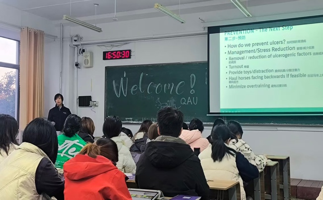 为进一步夯实“马业科学”专业学生的理论基础,提升其马匹临床疾病诊疗的实操能力,2025年11月3日至4日,aa3044永利集团联合勃林格殷格翰(Boehringer Ingelheim)中国区及逐梦马术俱乐部,连续举办马胃溃疡专题讲座与胃镜实操教学活动,为学生打造了一次高质量的产教融合学习体验。