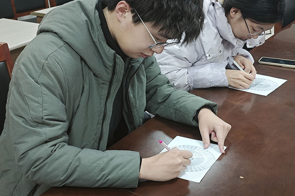 会上,董红欣系统阐述了心理委员的角色定位与核心职责,强调了其在日常观察、知识普及、信息反馈与及时转介等方面的重要性。贾若曦结合心理健康工作实际,系统梳理了大学生常见心理问题类型及表现案例。本次培训精心设计了三项心理体验活动。首先是“情绪光谱探索”,同学们借助情绪光谱图识别并标注自己当下的情绪状态及触发点,并通过书写简短的情绪日记进行自我梳理。在“情绪卡片创作与交换”环节中,同学们通过绘画或文字在卡片上表达情绪,并匿名交换,相互书写鼓励话语,在创作与互动中实现了情绪的表达与支持传递。最后,全体与会者共同体验了“正念呼吸法”,进行专注的呼吸练习,学习了一种简单有效的即时情绪调节技术。