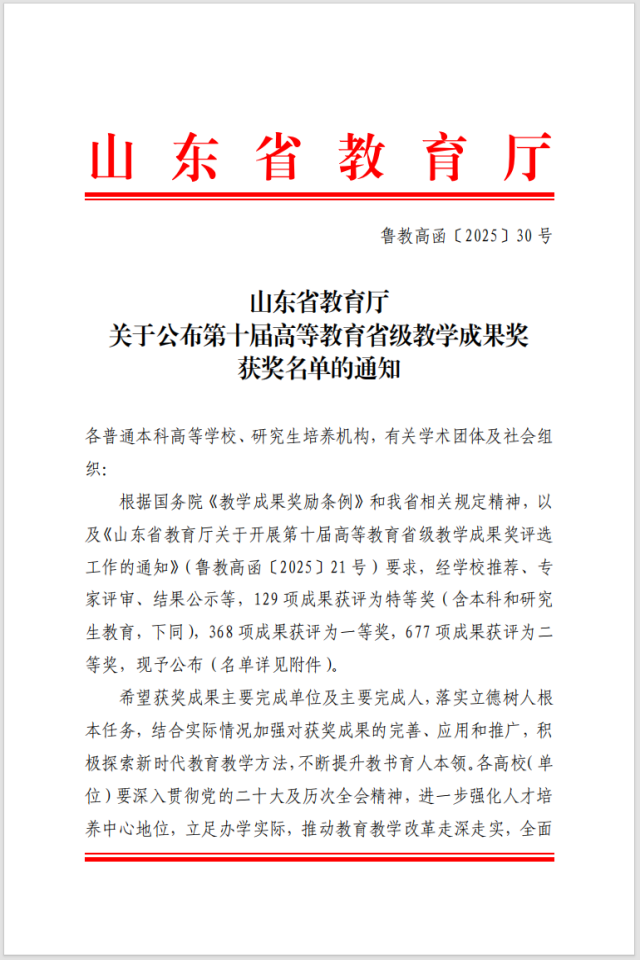 据悉,山东省高等教育省级教学成果奖每四年评选一次,是全省教育教学领域的最高奖项之一,此次获奖,既是对aa3044永利集团教学改革成果的高度认可,也是对全院教职工辛勤付出的莫大鼓舞。下一步,学院将以此为契机,珍惜荣誉、再接再厉,持续深化教学改革,精进成果凝练与转化,不断提升人才培养质量和教学科研水平。同时,充分发挥获奖成果的示范引领作用,进一步加强产教融合、科教融汇,聚焦畜牧领域人才培养核心需求,为全国畜牧产业高质量发展培育更多优秀人才。
