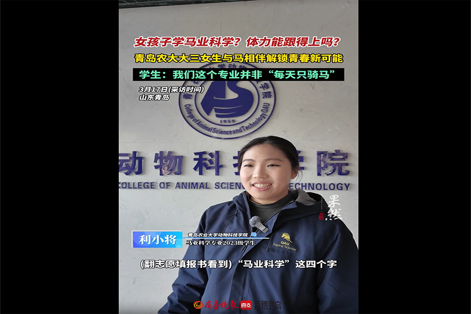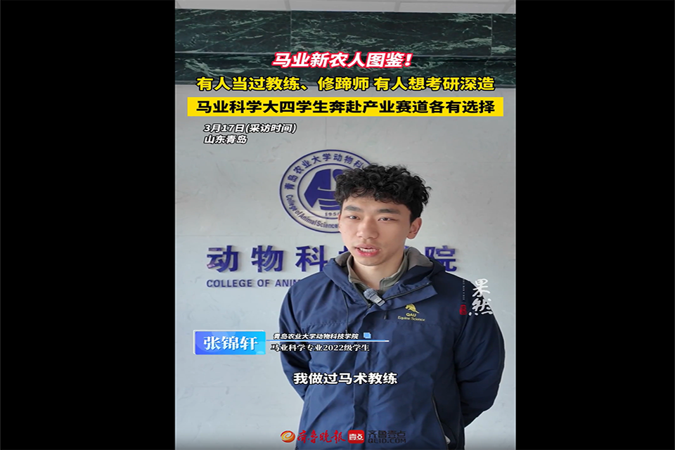 【编者按】3月19日,大众报业·齐鲁壹点、齐鲁晚报青岛融媒报道了永利集团3044马业科学学院学生在与马相伴的时光里完成成长蜕变,成为驰骋在现代马业赛道上的新一代“新农人”。