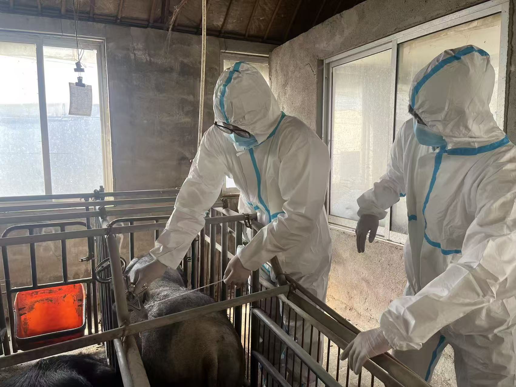 调研期间,团队深入养殖一线,全面排查沂蒙黑猪种群结构、疫病防控及繁育管理等情况,与基地技术人员、养殖骨干深入交流,精准梳理育种环节技术难点。针对良种繁育核心需求,团队开展种公猪精液采集与品质检测实操,同步对基地人员进行现场培训,规范操作标准、提升技术能力,筑牢优良种质资源保护工作。
